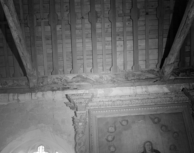 Chapelle nord, mur est, entrait partie médiane. (1978)Immatriculation