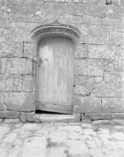 Elévation antérieure du logis, détail de la porte d'entrée. (1978)Immatriculation