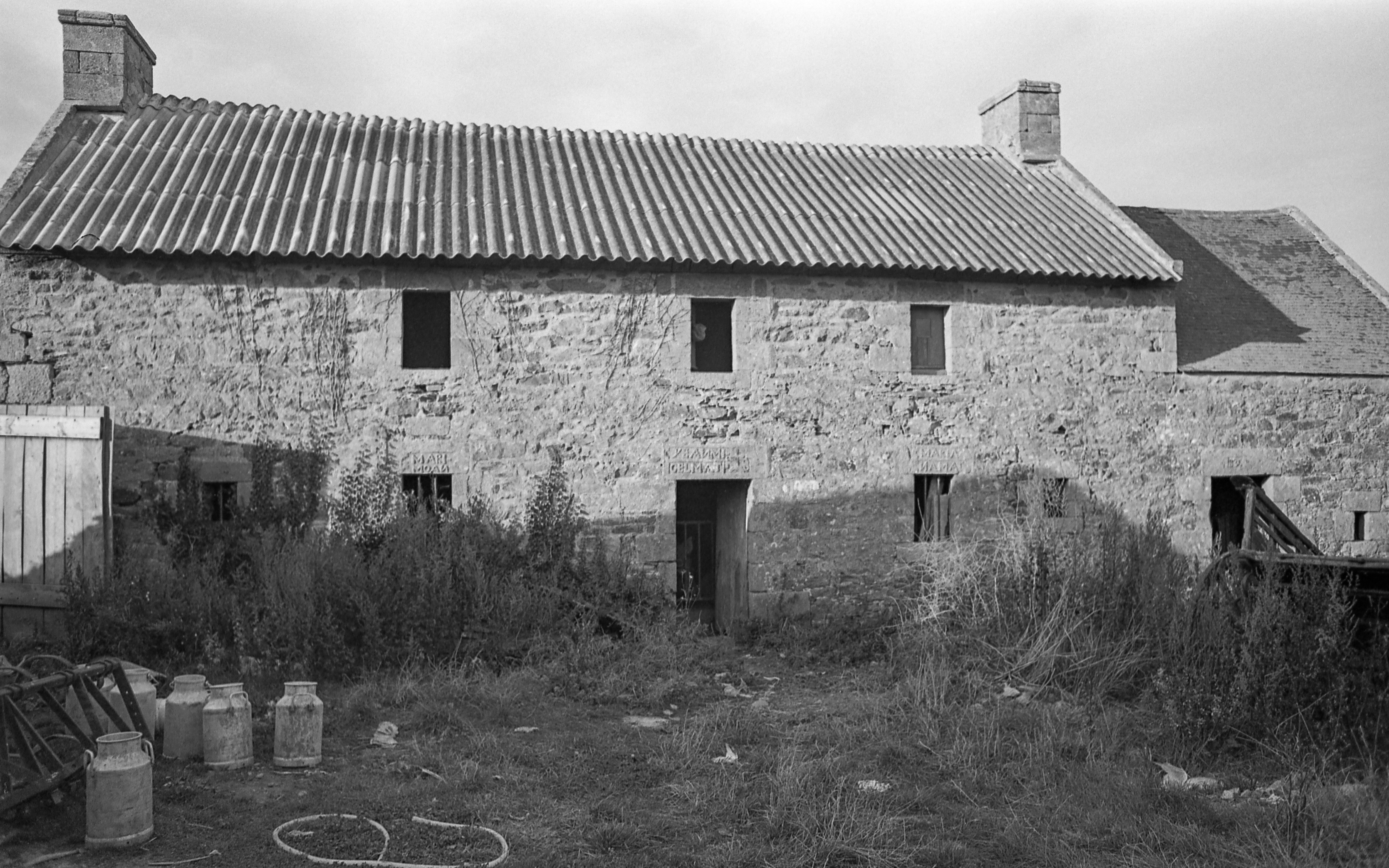 Ferme 1, élévation antérieure de l'alignement principal : logis et écurie. (1978)Immatriculation