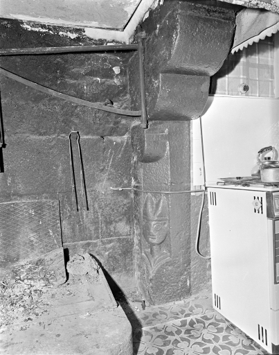 Rez-de-chaussée, cheminée du mur ouest : piédroit et consoleImmatriculation