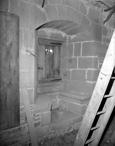 Clocher, fenêtre à coussièges.Immatriculation