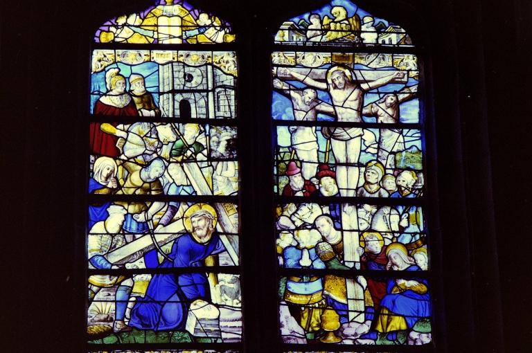 Verrière 2, panneaux a3 et b3 : Portement de croix et CrucifixionImmatriculation
