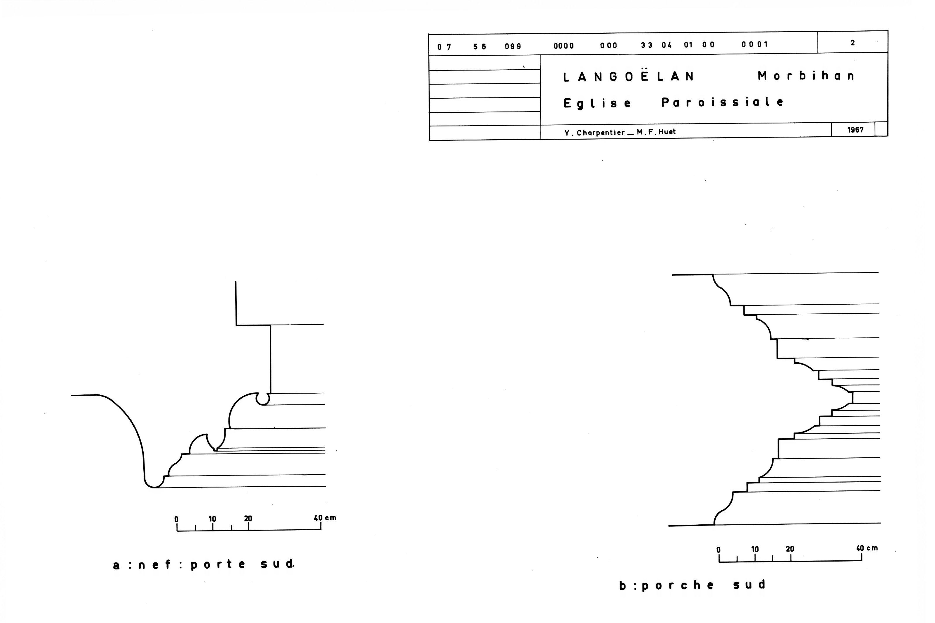 Détail porte sud, nef (a) et porche sud(b)Immatriculation