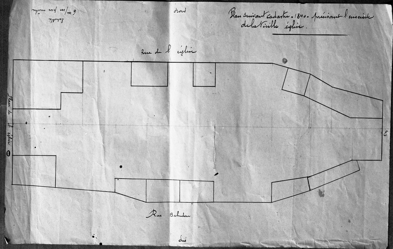 Plan suivant le cadastre de 1840 précisant l'enceinte de la vieille égliseImmatriculation