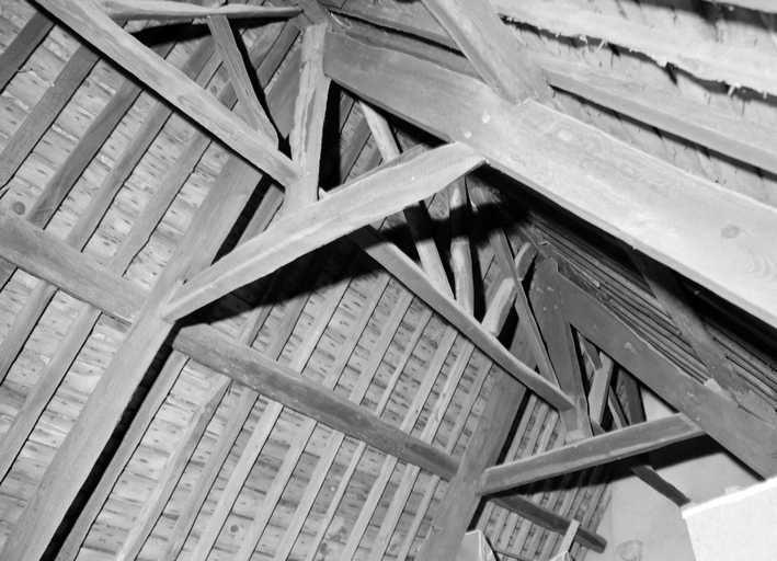 Charpente, vue générale des fermes.Immatriculation