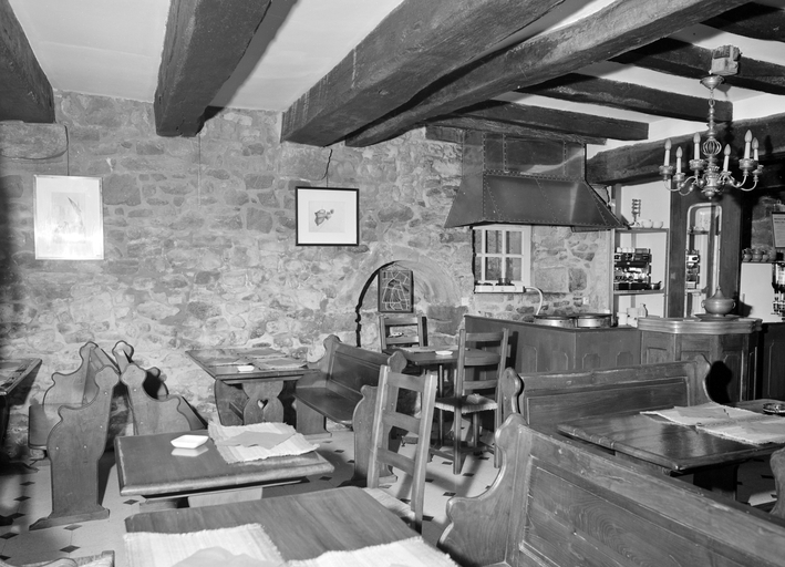 Intérieur, vue générale de la pièce du rez-de-chaussée, au fond, niche à évier en pierreImmatriculation