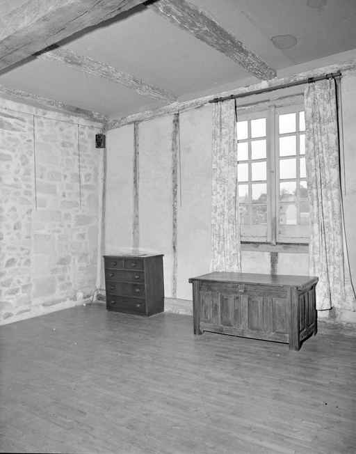 Intérieur, partie ouest, étage, pan de bois du mur de façadeImmatriculation