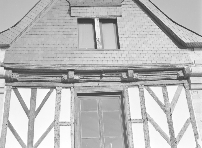 Elévation antérieure, partie droite, encorbellement à entretoises moulurées et consolesImmatriculation