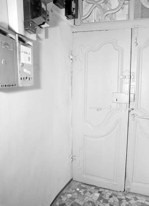 Porte de l'élévation latérale, revers des vantaux.Immatriculation