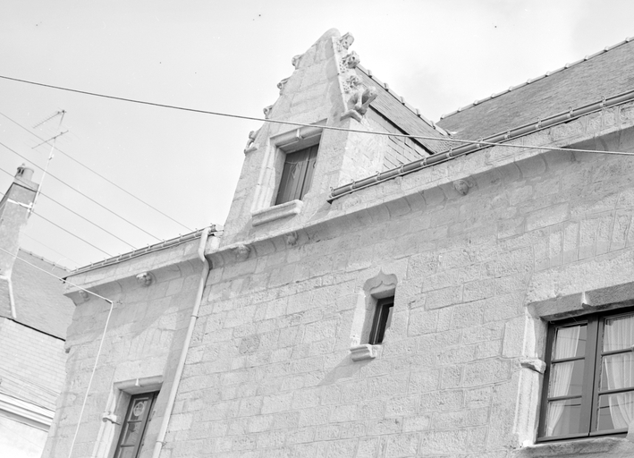 Elévation sur rue aux Fèves, lucarne et corniche, profil.Immatriculation
