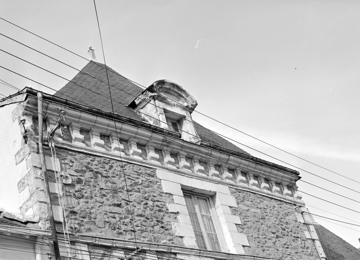 Elévation sur rue, détail des parties hautes.Immatriculation