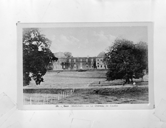 Reproduction carte postale, le château du Couébo.Immatriculation