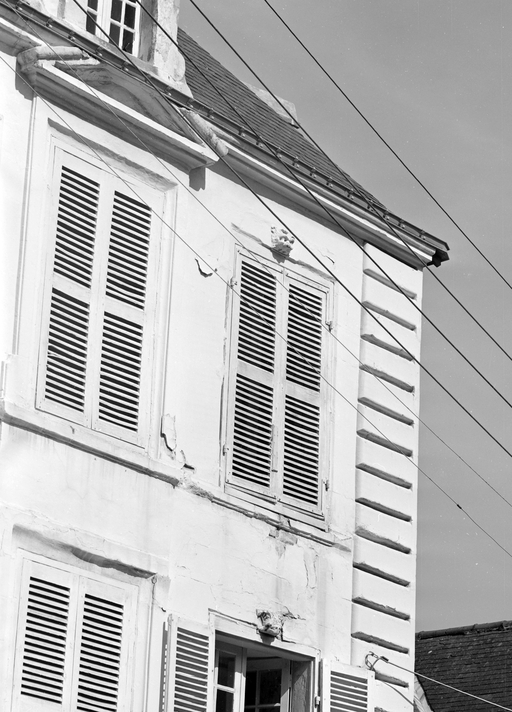 Elévation sur rue, fenêtre à clés ornées.Immatriculation