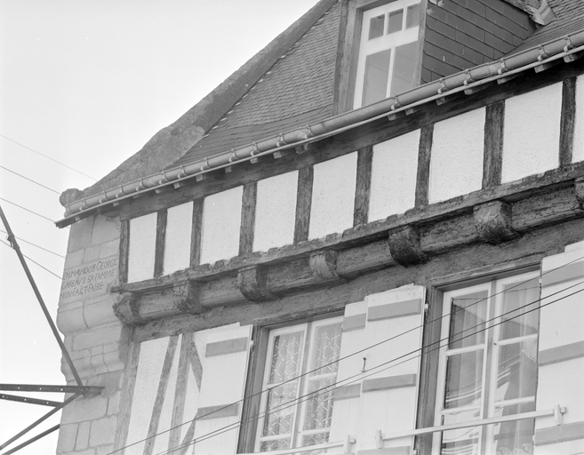 Elévation antérieure, partie haute : étage en surcroît et inscriptionImmatriculation