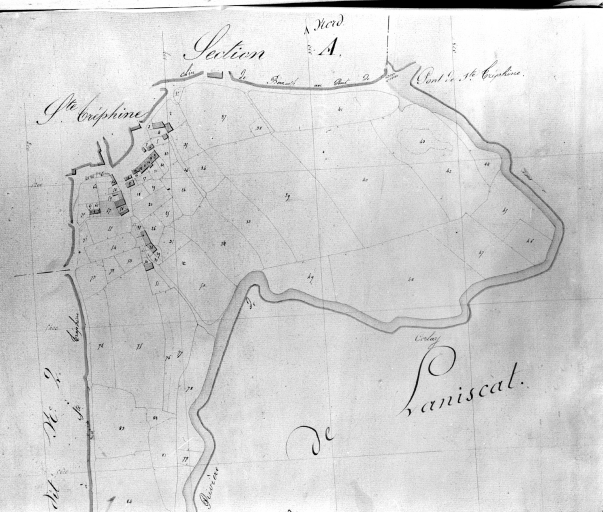 Cadastre ancien, section B (le village, partie sud-est).Immatriculation