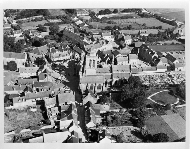 vue aérienne de la ville, avec l'égliseImmatriculation