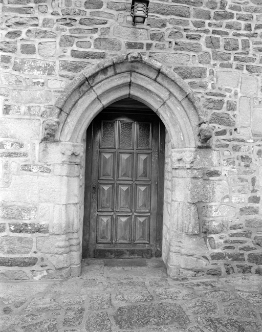 Corps de logis principal, élévation antérieure sud. Détail de la porte d'entrée. (1979)Immatriculation