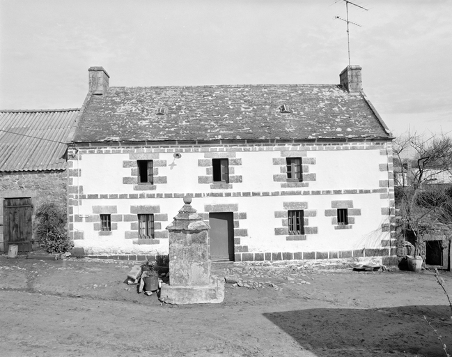 Logis daté 1843, élévation antérieure sud, façade crépie et puits daté 1856. (1979)Immatriculation