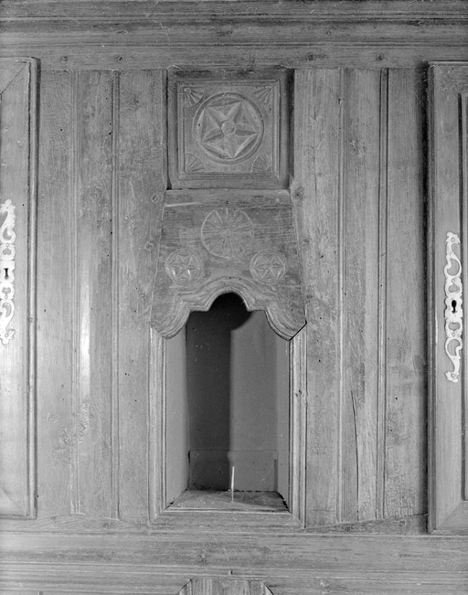 Drustuilh 8, détail niche à Vierge et absence d'ostensoirs sculptés. (1979)Immatriculation