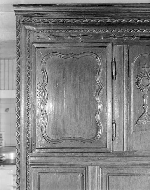 Drustuilh 2 daté 1821, détail de la porte gauche à panneau chantourné. (1979)Immatriculation