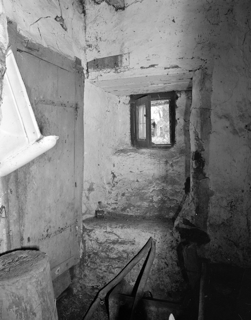 Logis, mur sud, détail du jour.Immatriculation