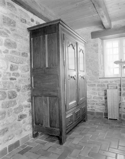 Armoire 2 à deux vantaux datée 1861, vue de côté. (1979)Immatriculation