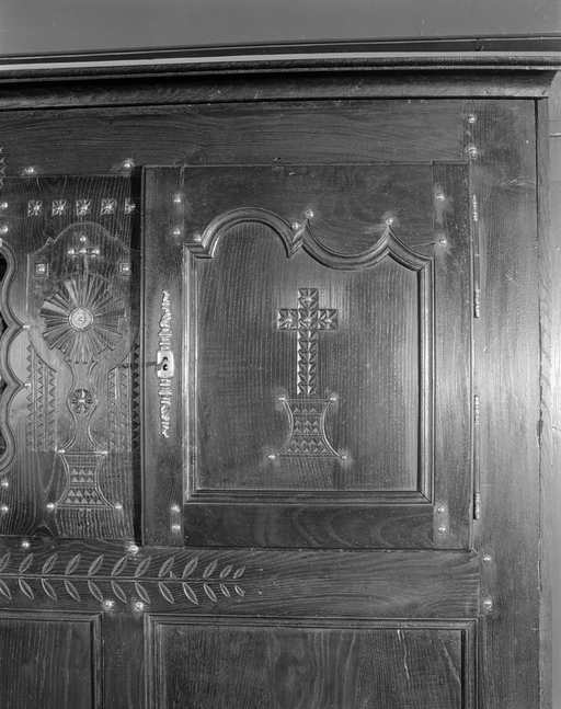 Drustuilh 19, détail d'une porte ornée d'une croix. (1979)Immatriculation