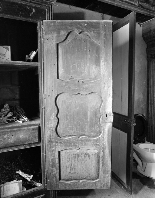 Armoire 1 à deux vantaux datée 1789, revers d'un vantail. (1979)Immatriculation