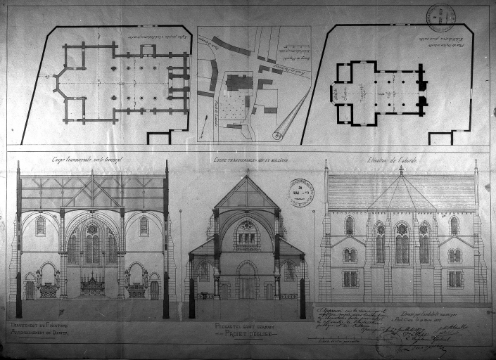 Plogastel-Saint-Germain, église paroissiale Saint-Pierre : reproduction de 1979 du projet de Jean-Marie Abgrall 1877, ensemble de relevésImmatriculation