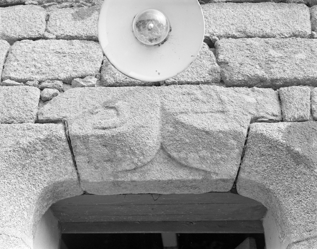 Logis 1872, détail du linteau de la porte avec marques d'artisanImmatriculation