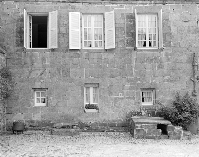 Logis, élévation sud, détail des fenêtres et de la niche du chien. (1979)Immatriculation