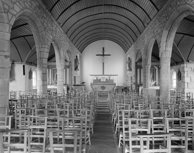 Vue intérieure de la nef vers l'ouest. (1979)Immatriculation