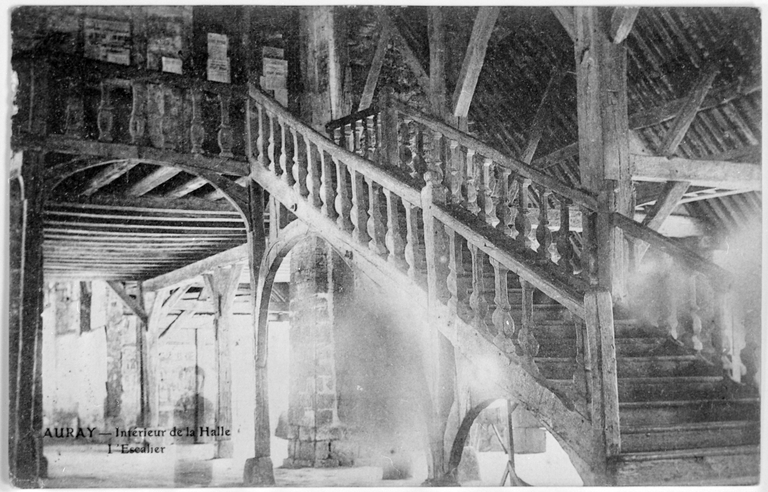 Intérieur de la Halle, l'escalier (reproduction carte postale)Immatriculation