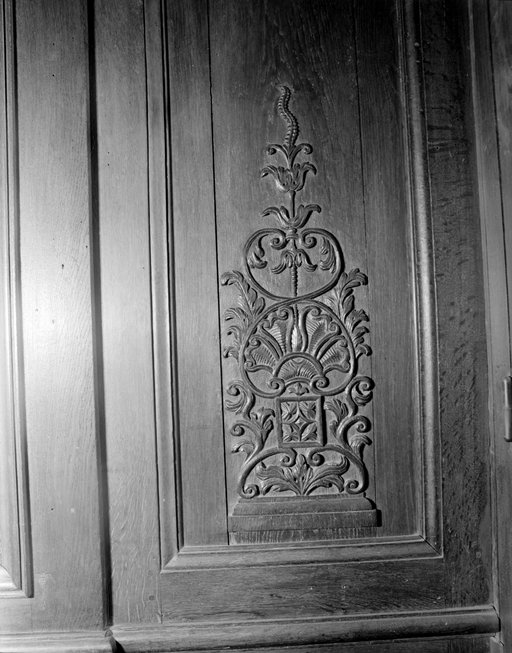 Salle du rez-de-chaussée, mur est, détail lambrisImmatriculation