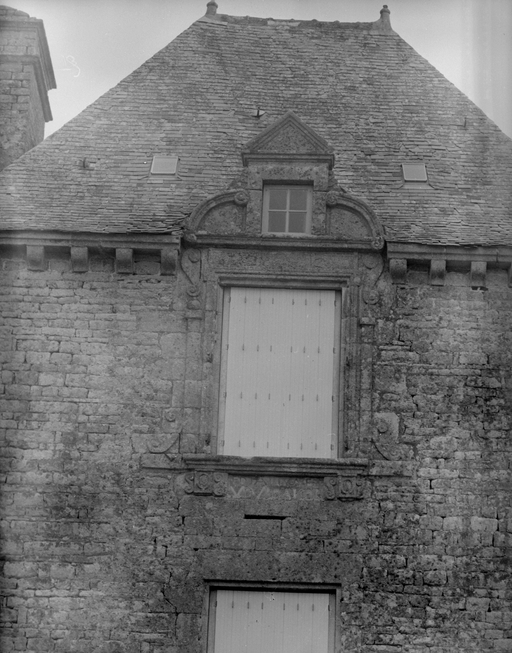 Logis, élévation postérieure, pavillon d'angle : vue des baies supérieuresImmatriculation