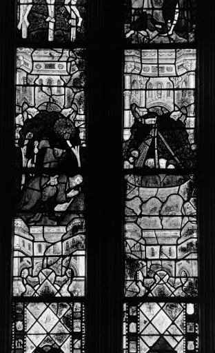 Maîtresse-vitre : Verrière à personnages : Vie de saint Jacques, Vie du Christ (baie 0),