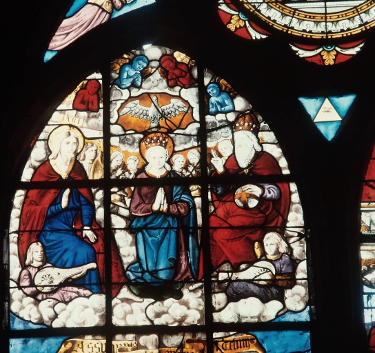Lancette a : registre supérieur (Couronnement de la Vierge)Immatriculation