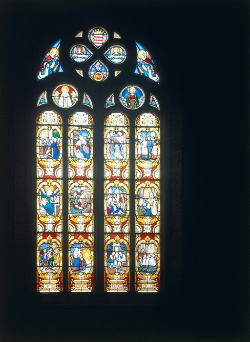 Verrières (8) : vie du Christ (baies 1 à 8), verrière à personnages, église paroissiale Notre-Dame du Roncier (Rostrenen),