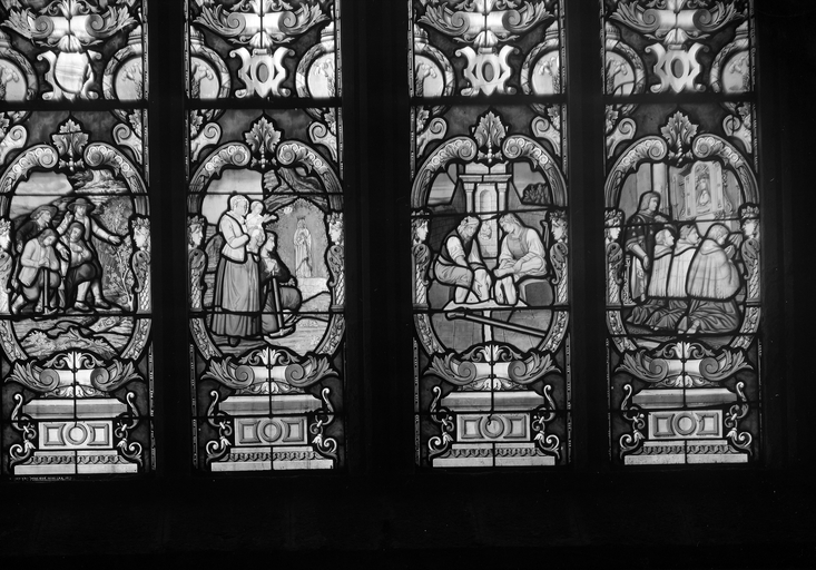Verrières (8) : vie du Christ (baies 1 à 8), verrière à personnages, église paroissiale Notre-Dame du Roncier (Rostrenen),