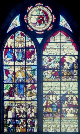 Maîtresse-vitre : Vie de la Vierge (baie 0) (La Ferrière fusionnée en Plémet en 2016),