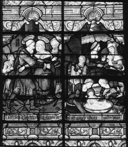 Lancette b, registre inférieur (Porte dorée, Naissance de la Vierge)Immatriculation