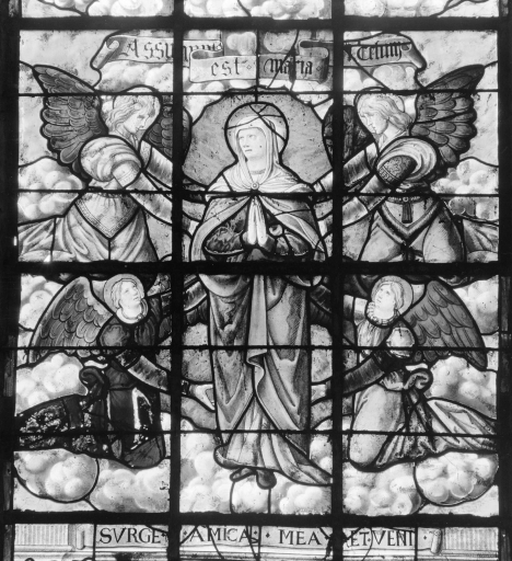Maîtresse-vitre : Vie de la Vierge (baie 0) (La Ferrière fusionnée en Plémet en 2016),