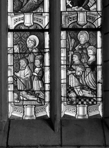Panneaux 1e, 1f : couple de donateurs et saint Pierre, couple de donateurs et saint SébastienImmatriculation