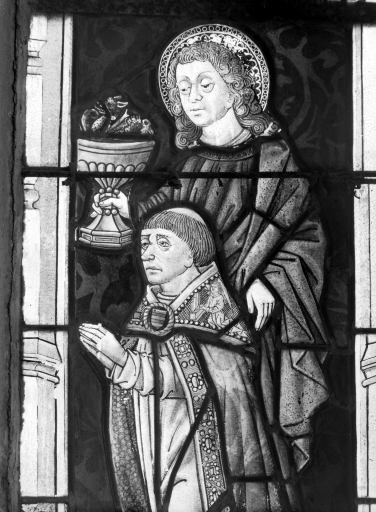 Panneau 1b : donateur (Christophe de Troguindy ?) et saint Jean, vue rapprochéeImmatriculation