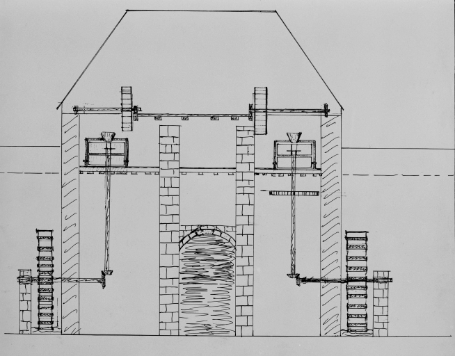 Moulin à mer, Traouiéros : coupe verticale du moulin.Immatriculation
