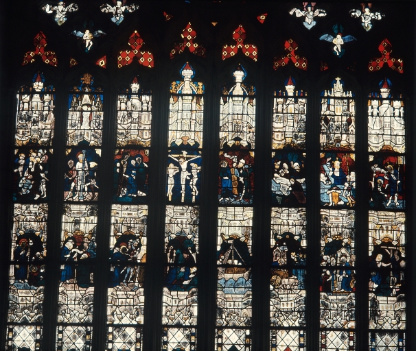Maîtresse-vitre : Verrière à personnages : Vie de saint Jacques, Vie du Christ (baie 0),
