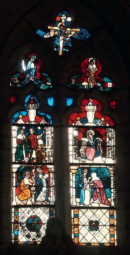 Verrière à personnages : Vie de la Vierge, Calvaire (baie 1),