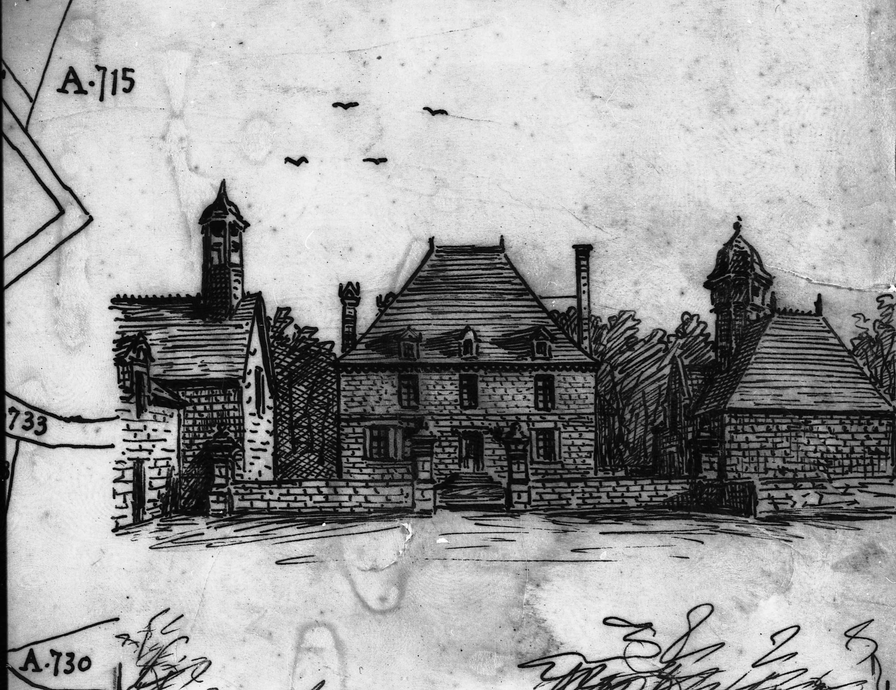 Trégarantec en Mellionnec, dessin du vicomte Henri Frotier de la Messelière (AD22).Immatriculation
