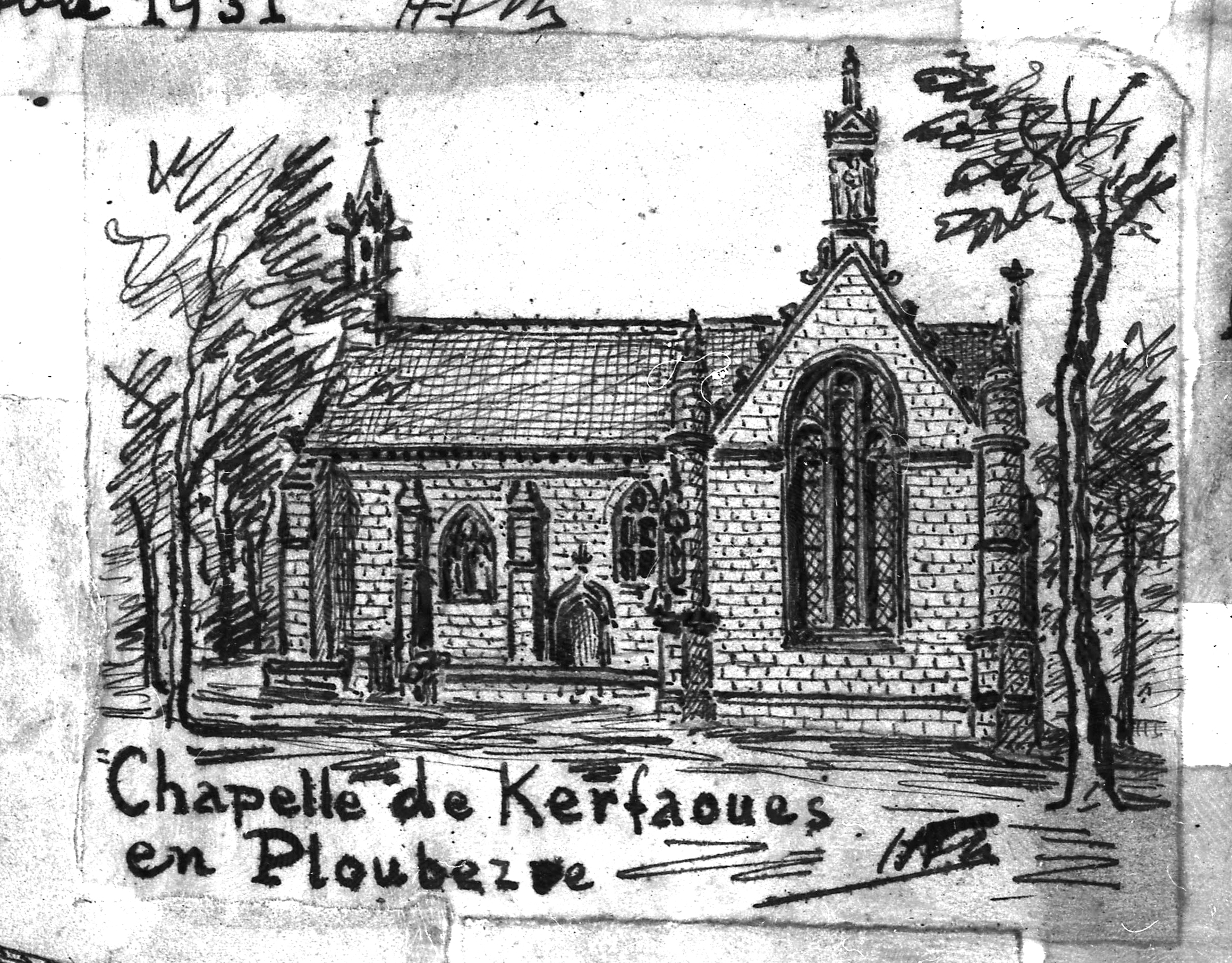 Ploubezre, chapelle de Kerfons : vue générale vers le sud, croquis par Henri Frotier de la MesselièreImmatriculation