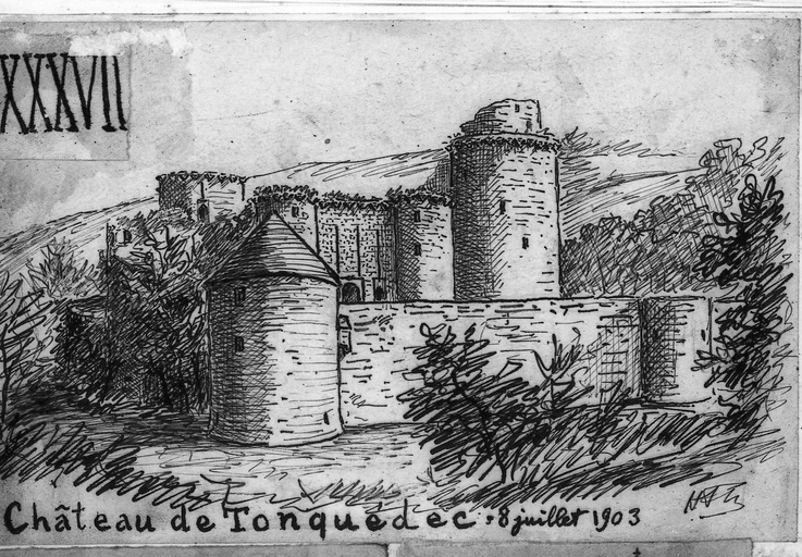 Tonquédec ; château fort, croquis par Henri Frotier de la Messelière, 8 juillet 1903Immatriculation